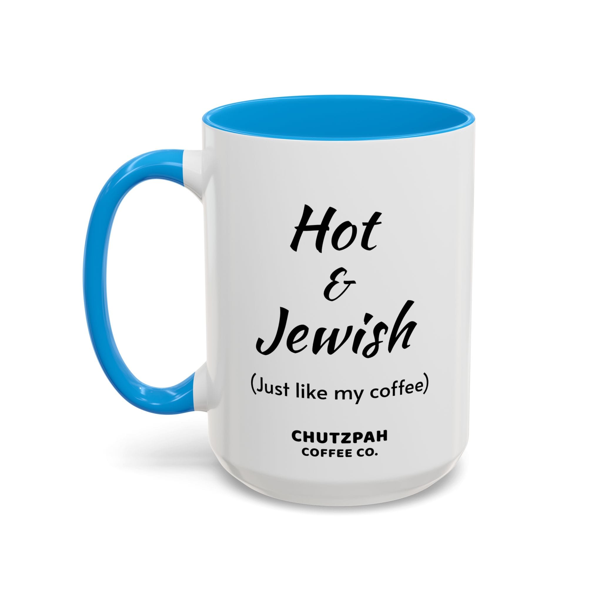 Available in 11 oz and 15 oz sizes, or as we say… hot, and extra hot, but always Jewish Dishwasher safe.