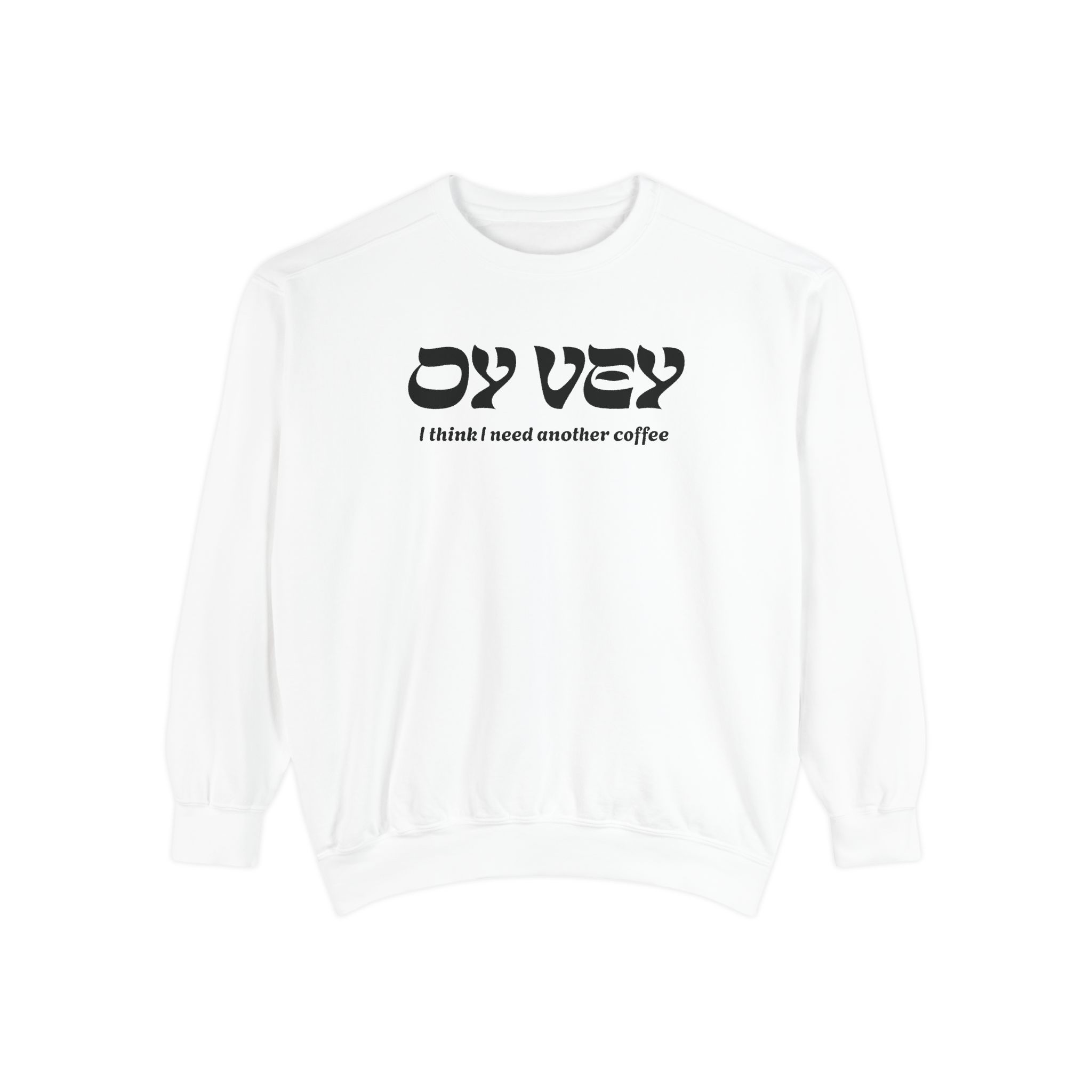 For the days when one cup is simply not going to cut it, our Oy Vey Crewneck understands the assignment. It is for early mornings, long days, and every moment in between when everything makes you want to say “Oy Vey”.